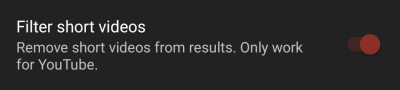 - Działające wszystkie opcje wyszukiwania (np. sortowanie wg daty, długości, szukanie tylko live albo kanałów)